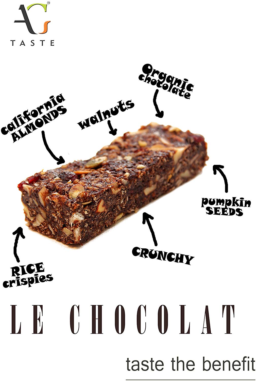 Made of dark organic chocolate, sun kissed California almonds, walnuts and rolled oats mixed with the natural goodness of honey. No added sugar or preservatives.